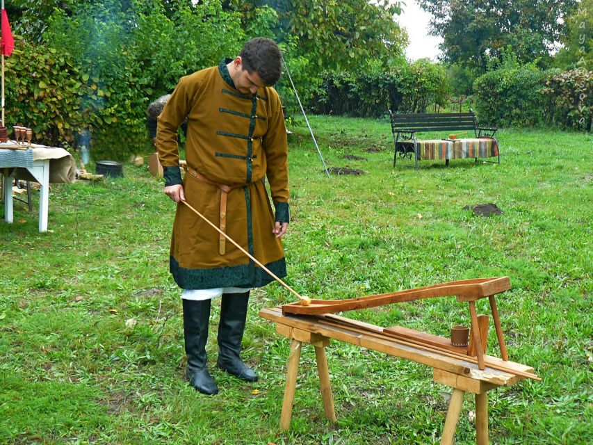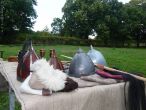 Изработване на военни униформи от времето на Първото българско царство, костюм на български владетел от епохата и ромейски бойни униформи.